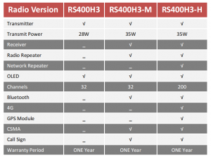The RS400H3 radio has three versions provides selectivity for the requirement from different users.